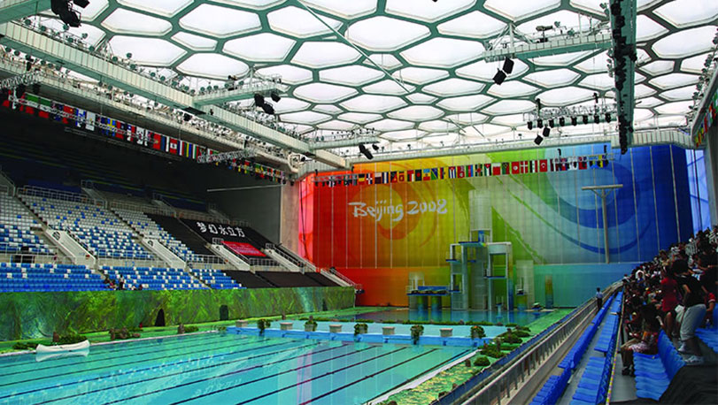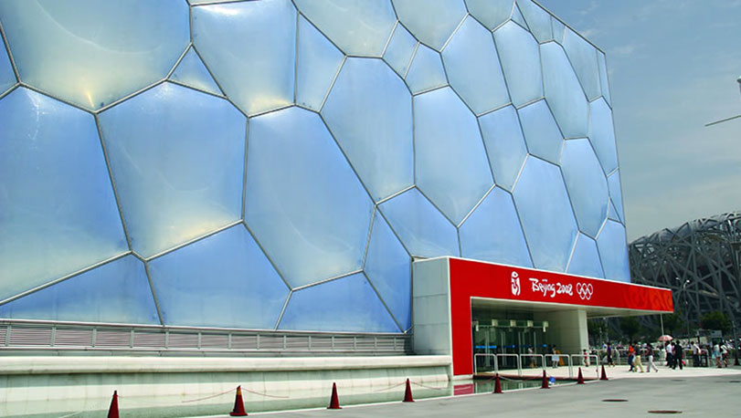 國家游泳中心位于北京奧林匹克公園內,2008年北京奧運會標志性建筑物之一。2007年建設,設計體現出“水立方”的設計理念,融建筑設計與結構設計于一體,設計新穎,結構獨特。