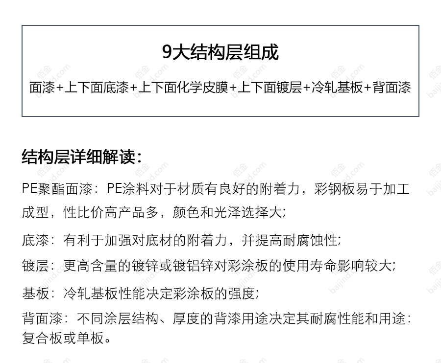 PE聚酯彩涂板附著力良好,在成型性和室外耐久性方面范圍較寬, 耐化學藥品性中等。廣泛應用于普通工業廠房及倉儲物流庫房的圍護系統中。