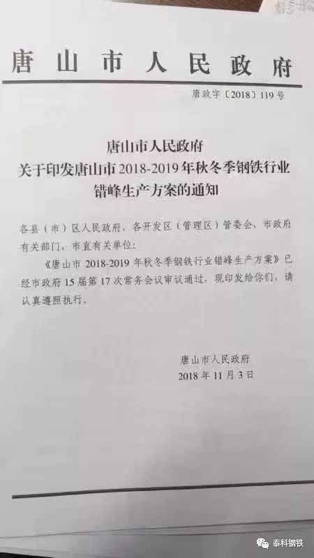 唐山秋冬季鋼企錯峰生產(chǎn)方案正式發(fā)布,限產(chǎn)產(chǎn)能1859.22萬噸