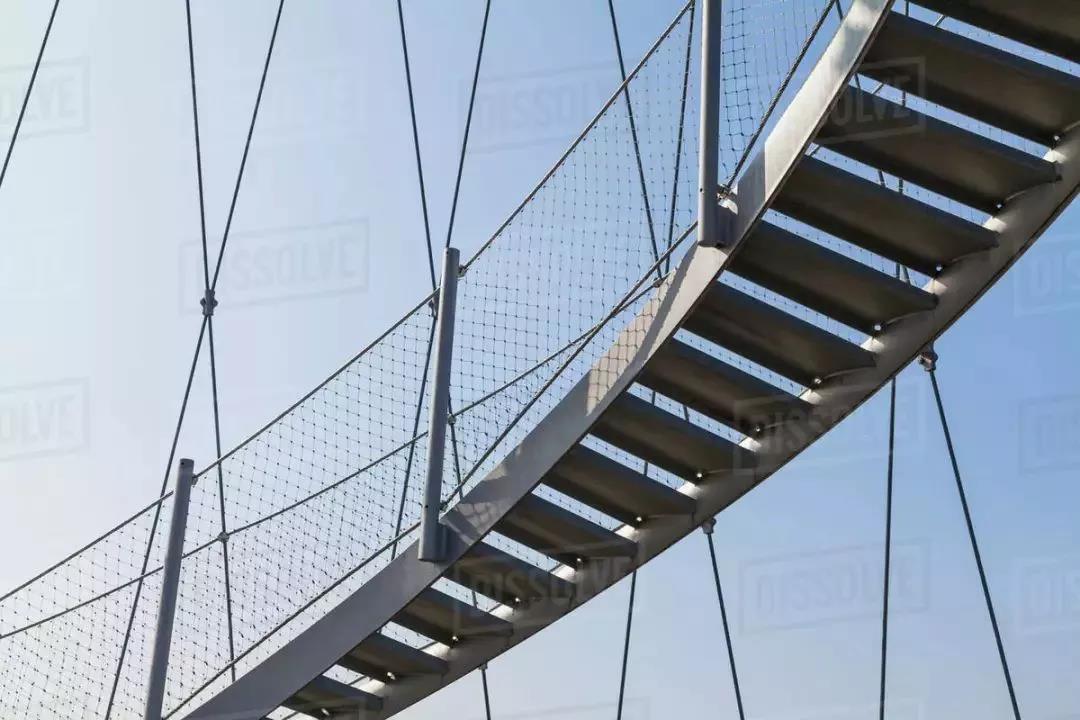 雙螺旋樓梯主要支撐在外圈的索網上,所以螺旋外側做強,為較粗圓鋼管,同時連續的雙螺旋樓梯也提高了索網的穩定性。